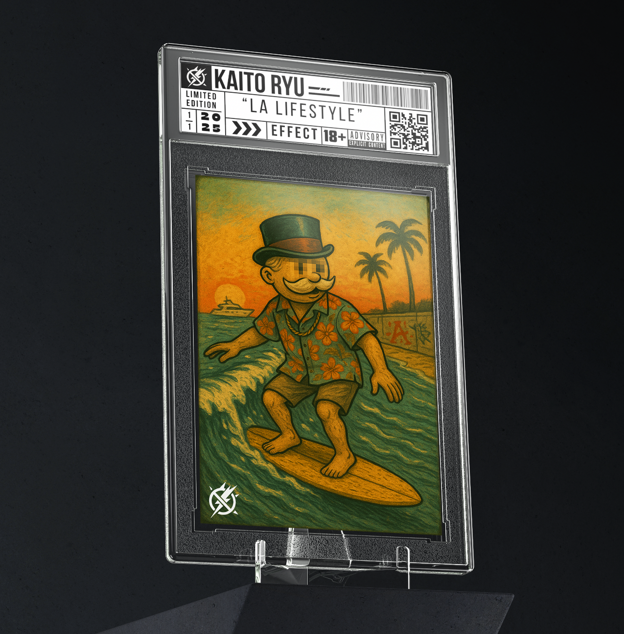 Kaito Ryu was fascinated by traditional japanese ink art and modern pop culture, he began creating artwork that blended both worlds. Over time, his style evolved into bold, hand-drawn illustrations infused with energy, nostalgia, and symbolism. Today, Kaito Ryu is known for his limited-edition art cards β each one a tribute to imagination, crafted with precision and sealed with his signature logo.